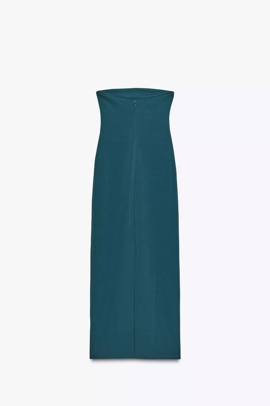 Ripp-Midi-Kleid mit Langen Ärmeln