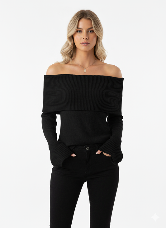 Off-Shoulder Ribbed Knit Top