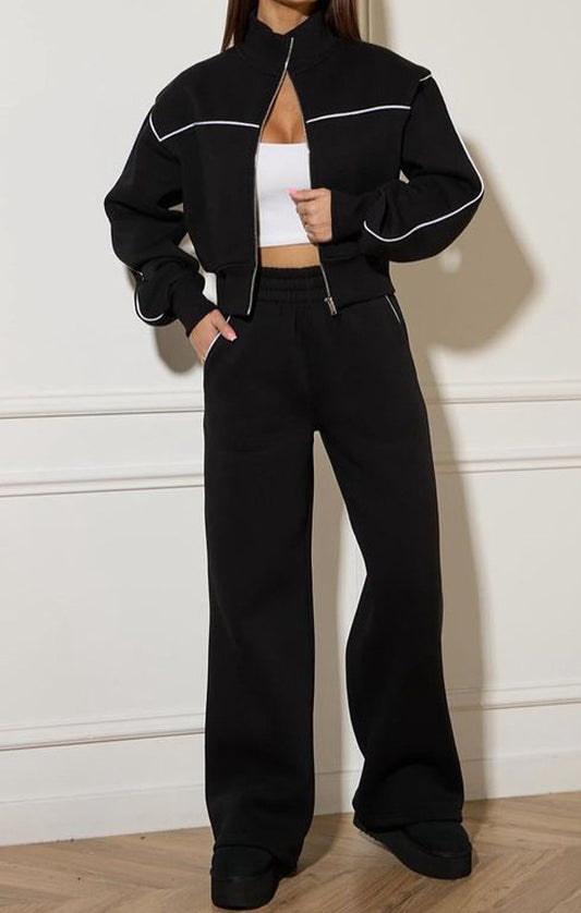 Lockeres Zip-Set mit seitlicher Linie Damen