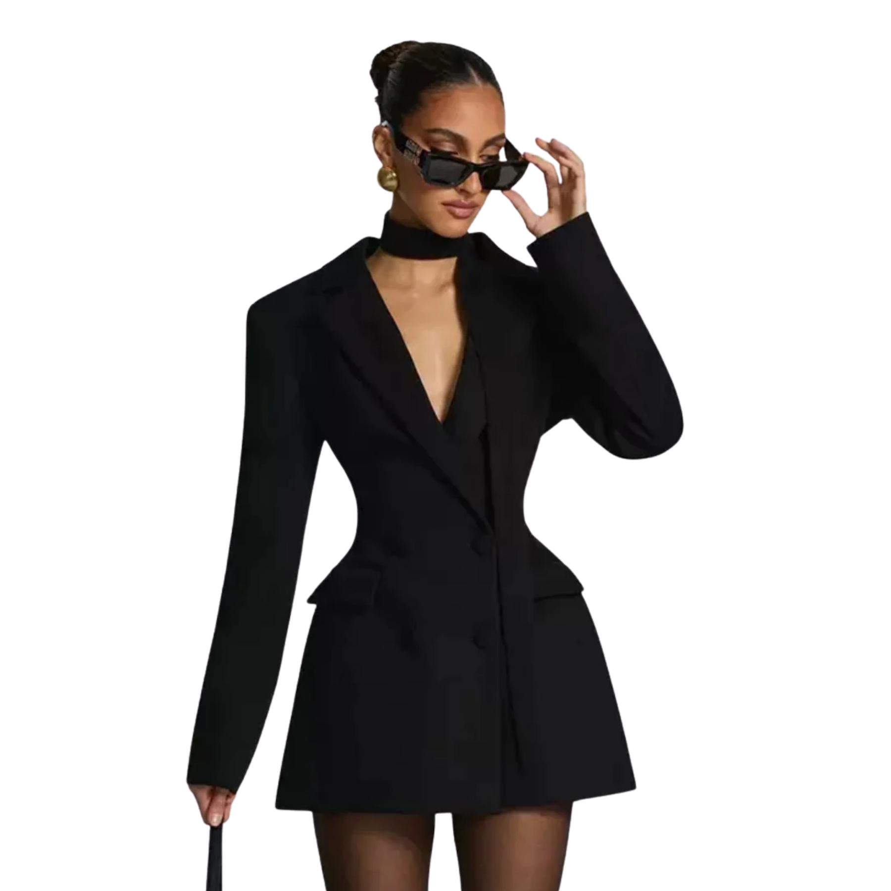 Das taillierte Blazerkleid „Élise“ betont die Silhouette mit einer eleganten Passform und verleiht jedem Look eine moderne, kraftvolle Ausstrahlung. Der strukturierte Schnitt formt eine schöne Taille, während das minimalistische Design zeitlose Eleganz ausstrahlt – perfekt für Abendlooks, Events oder stilvolle City-Outfits.