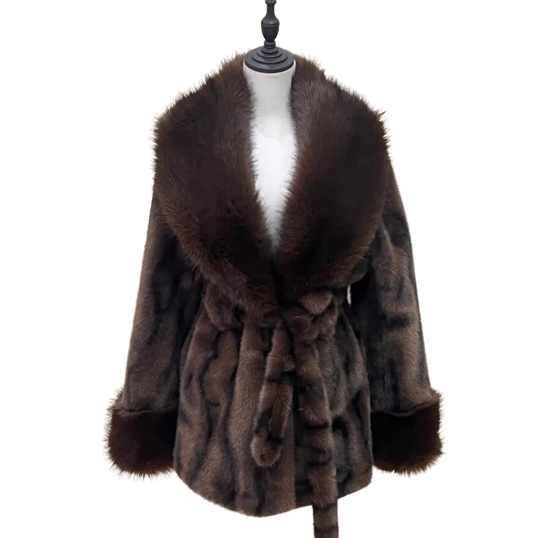 Dieser traumhafte Mantel vereint raffiniertes Design mit purem Luxus und wohliger Wärme. Die außergewöhnliche, strukturierte Optik des Materials harmoniert perfekt mit dem voluminösen Kragen und den breiten Manschetten aus besonders weichem Kunstfell. Dank des integrierten Bindegürtels lässt sich die Taille feminin betonen, sodass eine elegante Silhouette entsteht. Ein absolutes Statement-Piece, das Sie an kühlen Tagen nicht nur wärmt, sondern jedem Outfit sofortigen Glamour verleiht.
